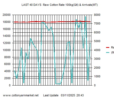 V:Bunny R:6625 A:125 V:Cotton(Unginned) R:7288 A:92.1 V:H.B(Unginned) R:7455 A:30.4 V:H.Y.4(Unginned) R:6955 A:66.82 V:Local R:6752 A:332 V:NarmaBTCotton R:7200 A:480 V:Other R:6911 A:1676.8 V:RCH-2 R:7002 A:82.94 V:Shanker6(B)30mmFIne R:7118 A:698.92 |